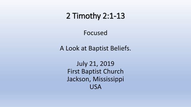 07 21 19 2 Timothy 2 1 13 Focused A Look At Baptist Beliefs